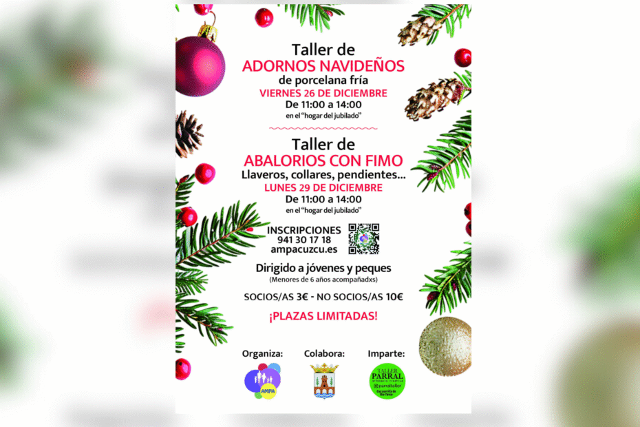 Una mañana completa de creatividad, color y manualidades navideñas para todas las edades. Puedes apuntarte a uno… ¡o a los dos!